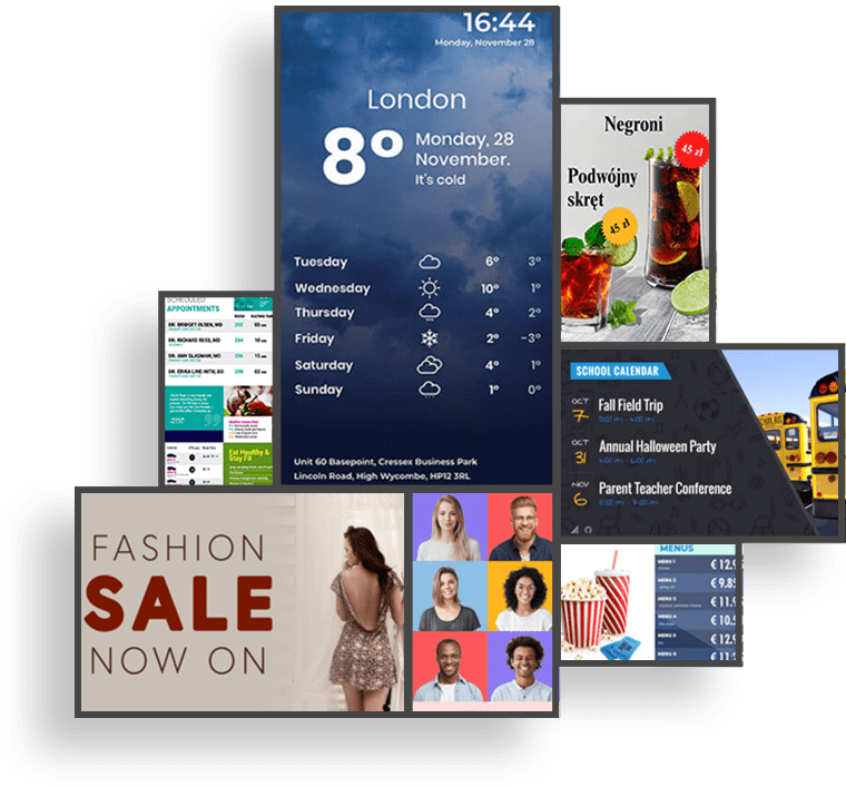 Z ADScreen stosujesz własne zasady. Uzupełniaj gotowe szablony swoimi treściami, zmieniaj kolory, dodawaj lub edytuj informacje, takie jak ceny w restauracji albo plan zajęć na uczelni.