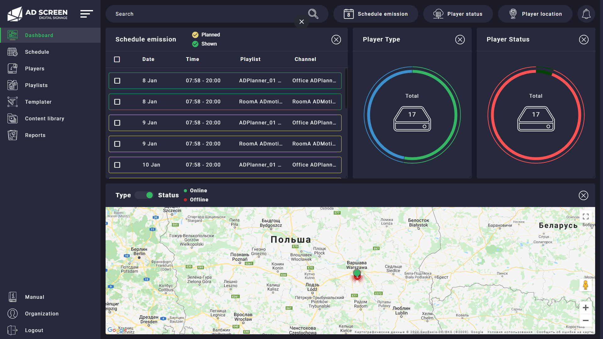 Oprogramowanie ADScreen pozwala łatwiej niż kiedykolwiek dzielić się istotnymi treściami z publicznością. Użyj go do sterowania jednym lub tysiącami swoich ekranów z dowolnego urządzenia w dowolnym miejscu na świecie.